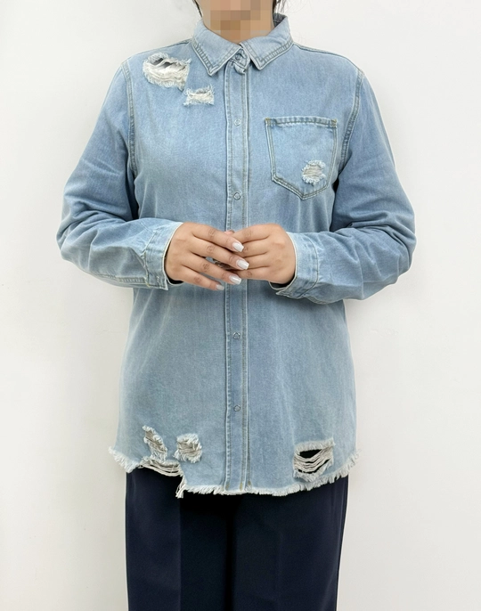 شومیز جین، تک رنگ آبی میباشد/ شومیز دارای سایزبندی است و در راهنمای سایز،سایزها ذکر شده اند